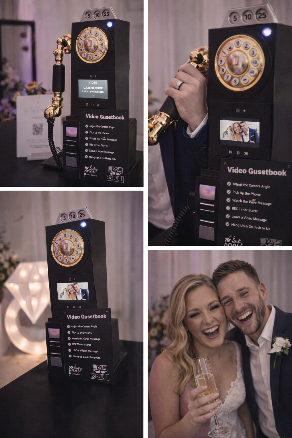 Ons vintage video gastenboek brengt nostalgie en emotie samen in één stijlvolle ervaring. Gasten nemen de hoorn op en laten een persoonlijke videoboodschap achter — spontaan, oprecht en onvergetelijk.